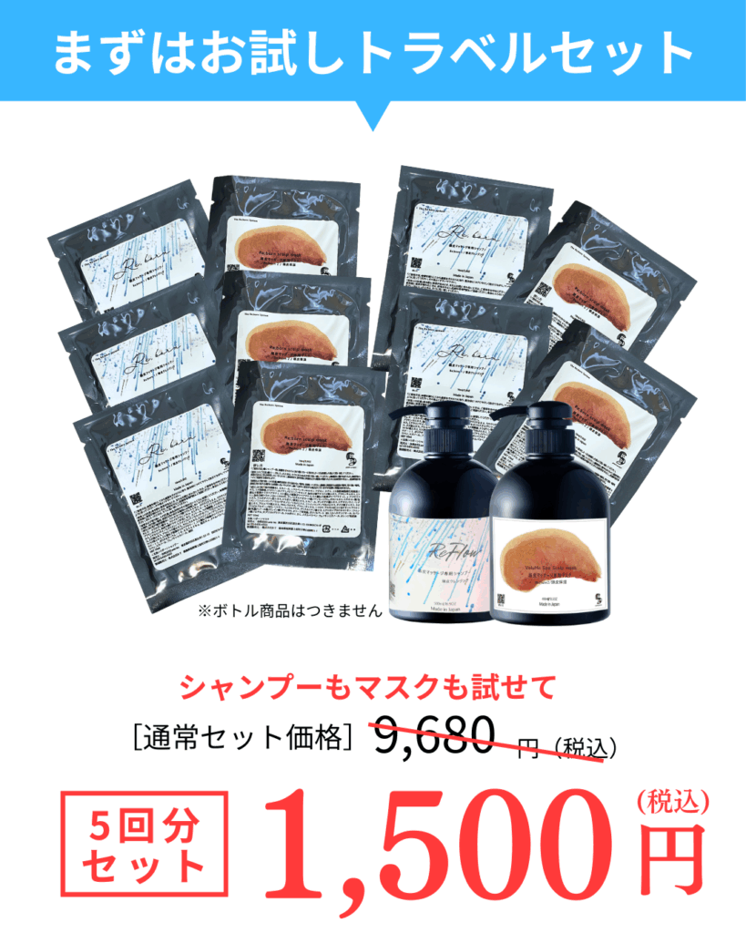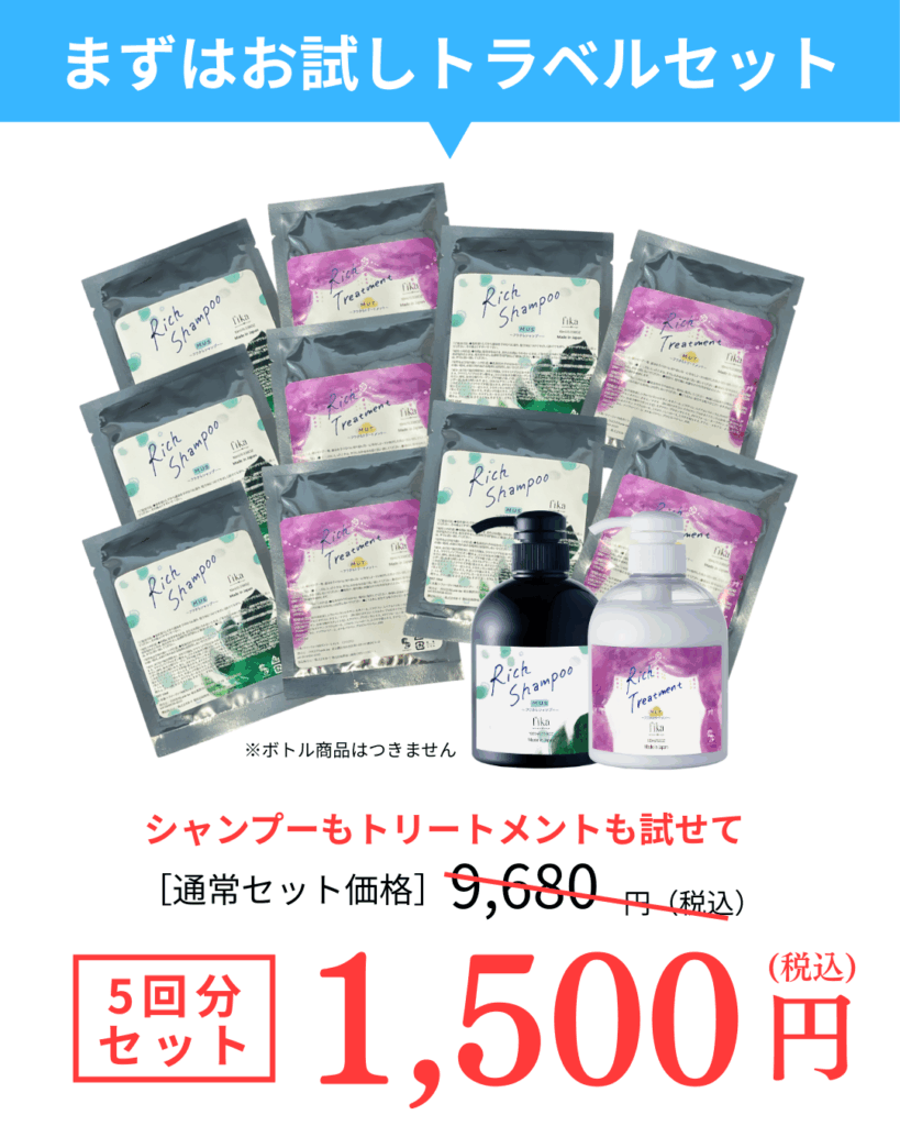 3種類のシャンプー&トリートメントセットを少量からお試しできる、トラベルセットをご用意しております。また、オーナーも敏感肌であることから、fimyuでは「お肌への優しさ」も大切に商品を開発しております。ぜひお気軽にお試しください。